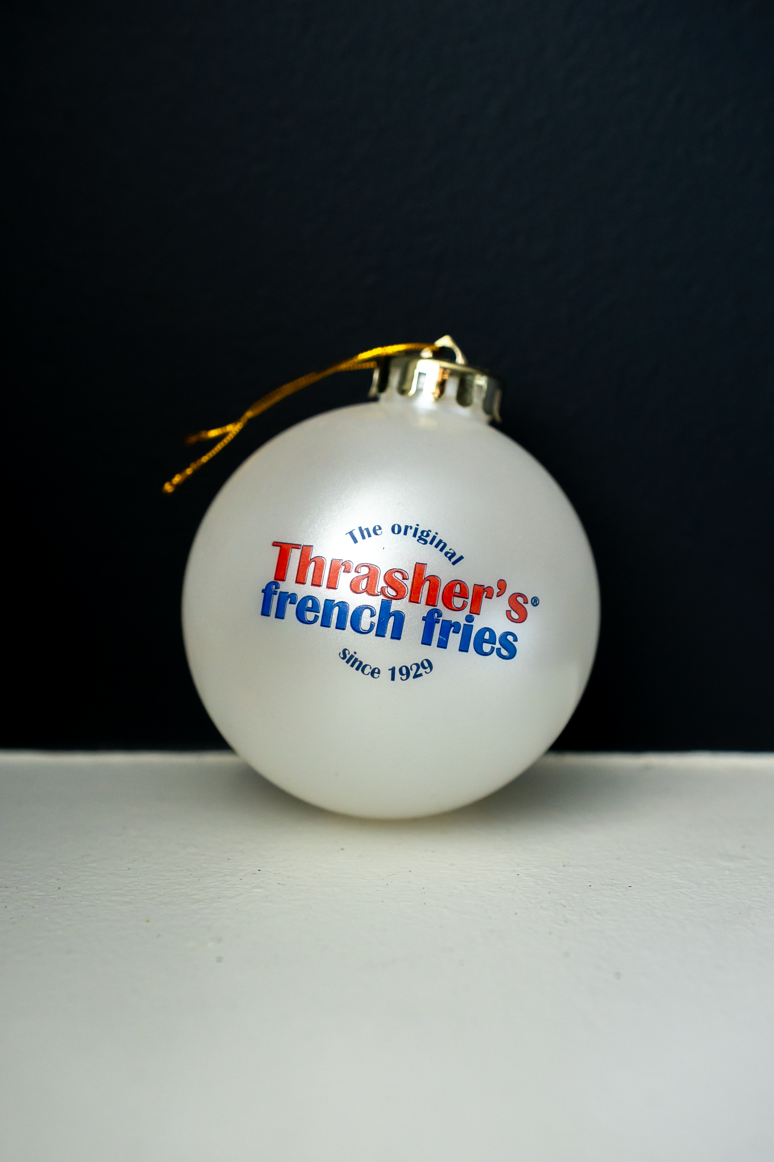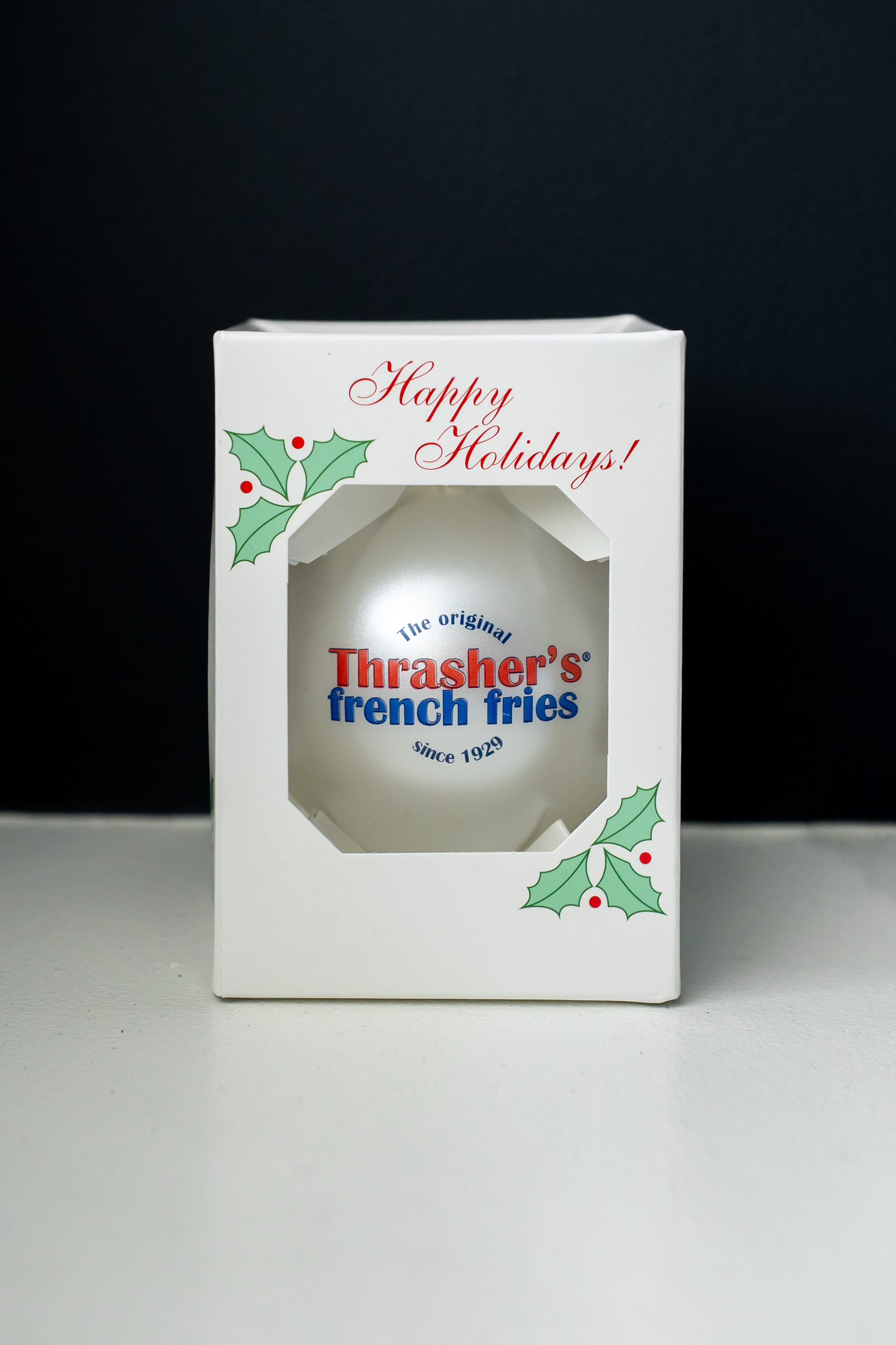 Add some holiday fun with the Thrasher’s French Fries Ornament! This classic bulb features the iconic Thrasher’s Fry logo, perfect for fans of the brand or anyone who loves a playful touch on the tree.